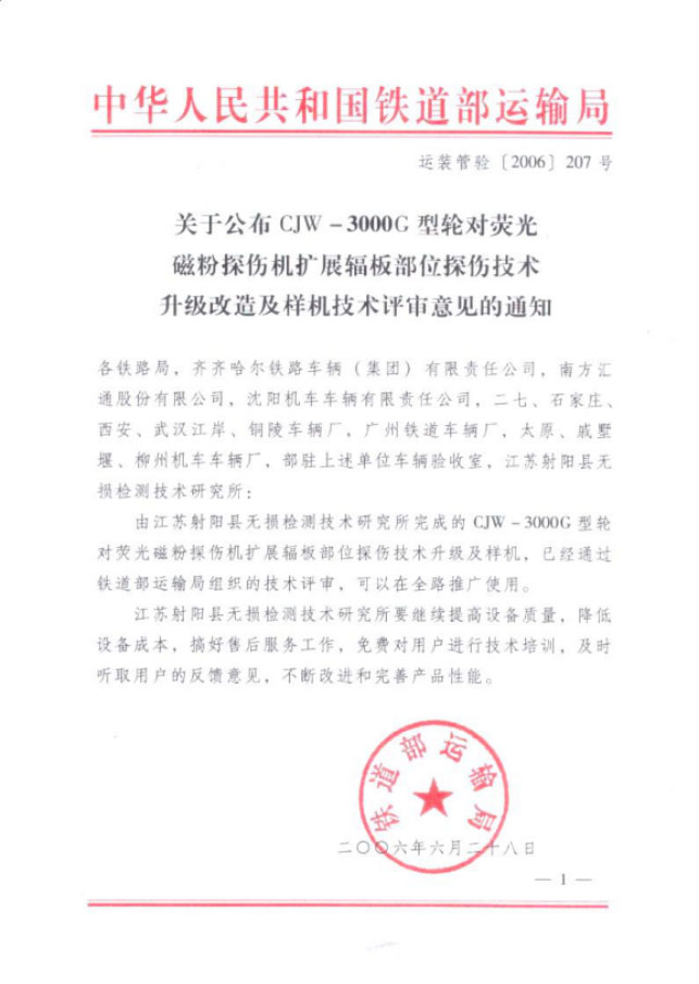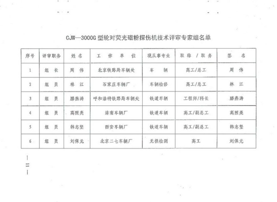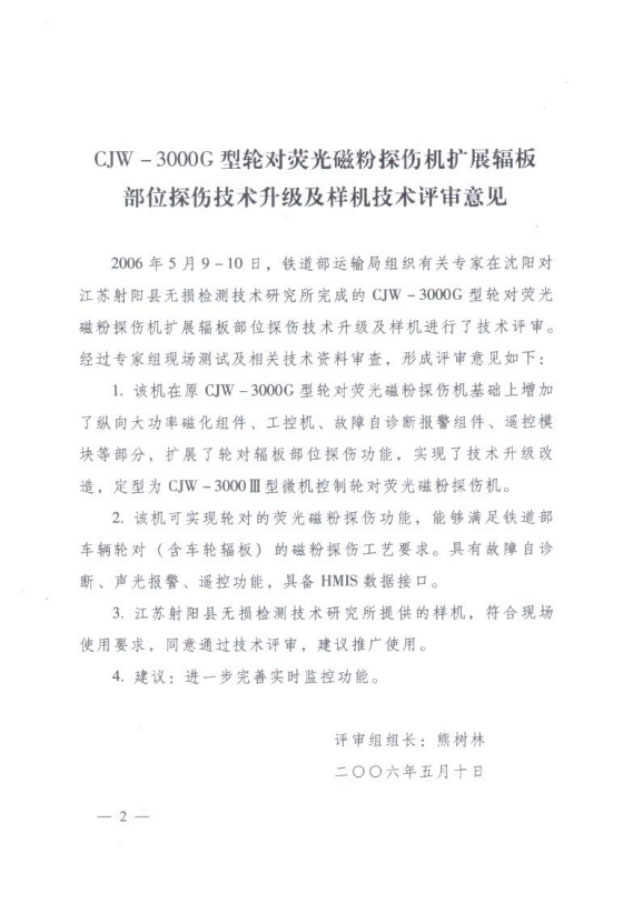 CJW-3000G型轮对荧光磁粉探伤机技术评审意见..